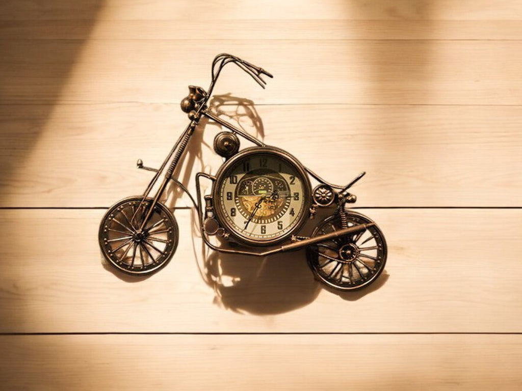 The Gary Vintage Wall Clock features a luxurious charm with its gold appearance. This metal clock features an eye-catching vintage bike design and will add a sophisticated yet playful vibe to any room. Perfect for those who love unique home decor with a nod to nostalgia.