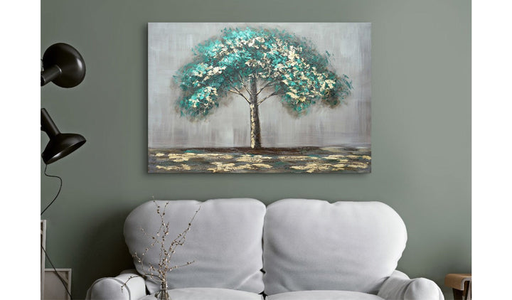An elegant discrepancy of white, black and gray with green that glances exemplary. Provoking blend of landscape and floral art exhibiting the influential elegance of nature. Gorgeous green vision tree is in its ample peak in the dusk. Perfect for anyone that craves to enhance the dignity and promoting art to their room.