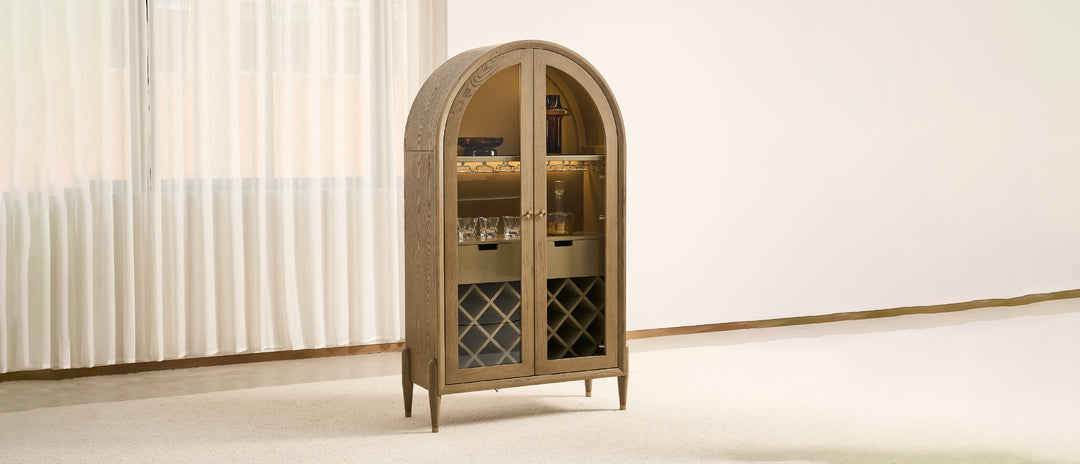 Showcase your finest wine collection with Marco Furniture’s wine cabinets. Crafted from premium materials like ash veneer, glass and sintered stone, these display cabinets redefine the aesthetics of your home bar. With glass doors that allow you to proudly display not only your wine but also your dinnerware, glassware, collectibles and home decor. Perfect for wine lovers and collectors, our cabinets offer a stylish yet practical way to store and display your treasured items.