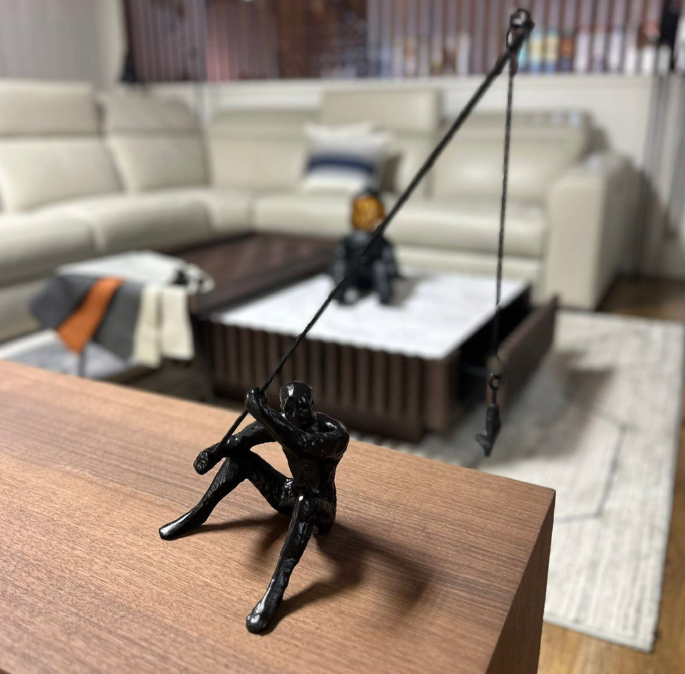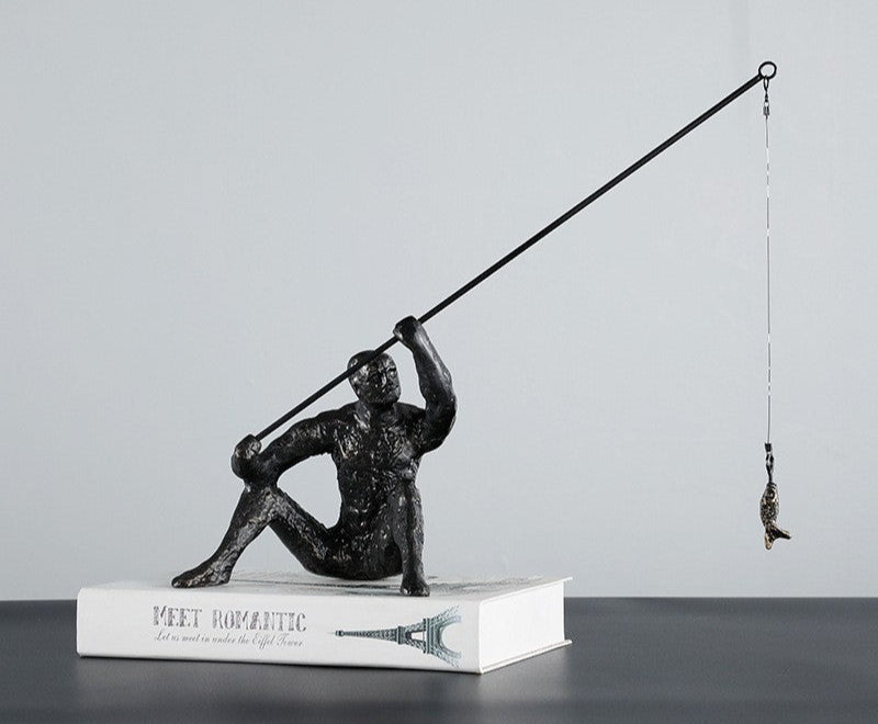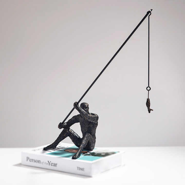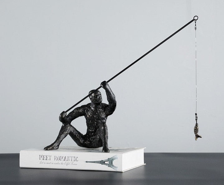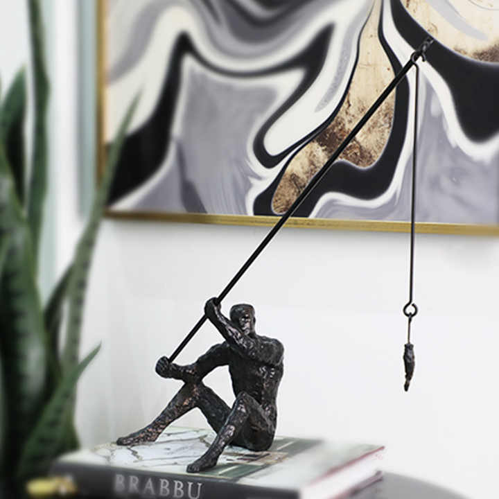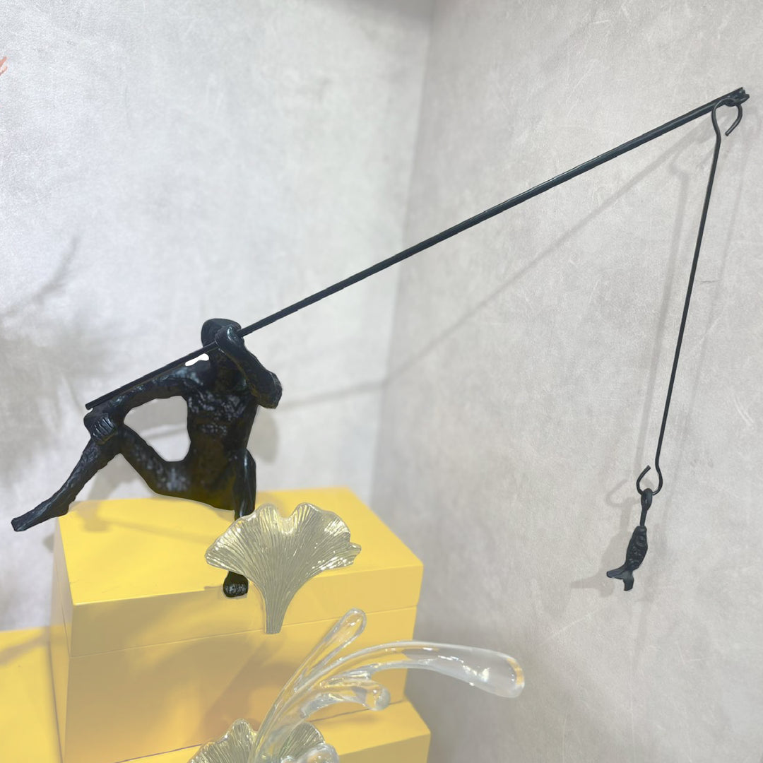 The Fisherman's Serenity Sculpture is a definite artistic piece, perfect for coffee tables, consoles, and corner tables. This modern sculpture is designed in the shape of a fisherman holding a fishing rod, made from metal with textured black finish.