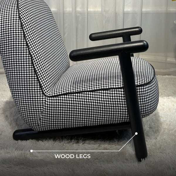 Apollo Houndstooth Armchair – Modern Wooden Accent Chair