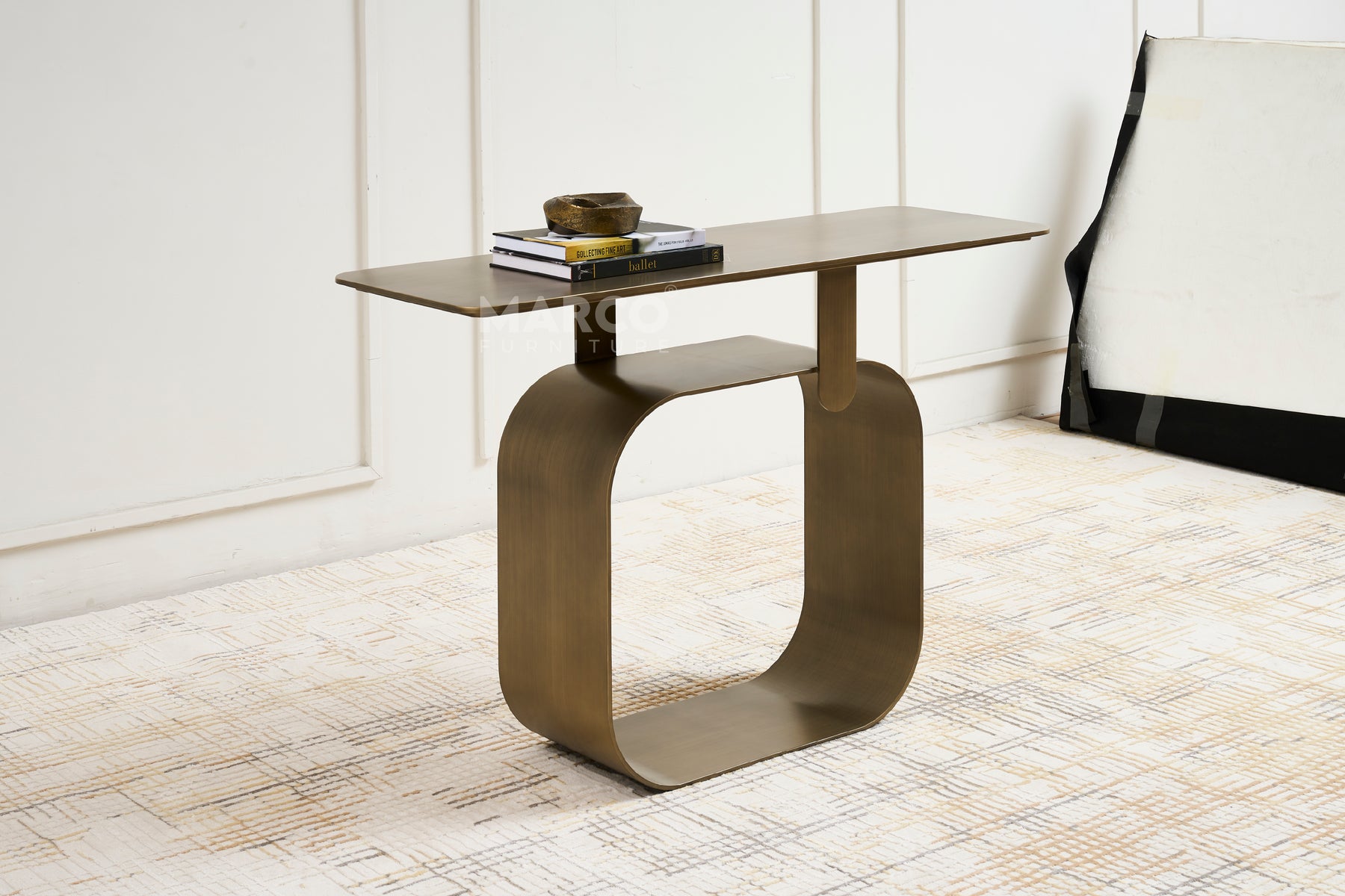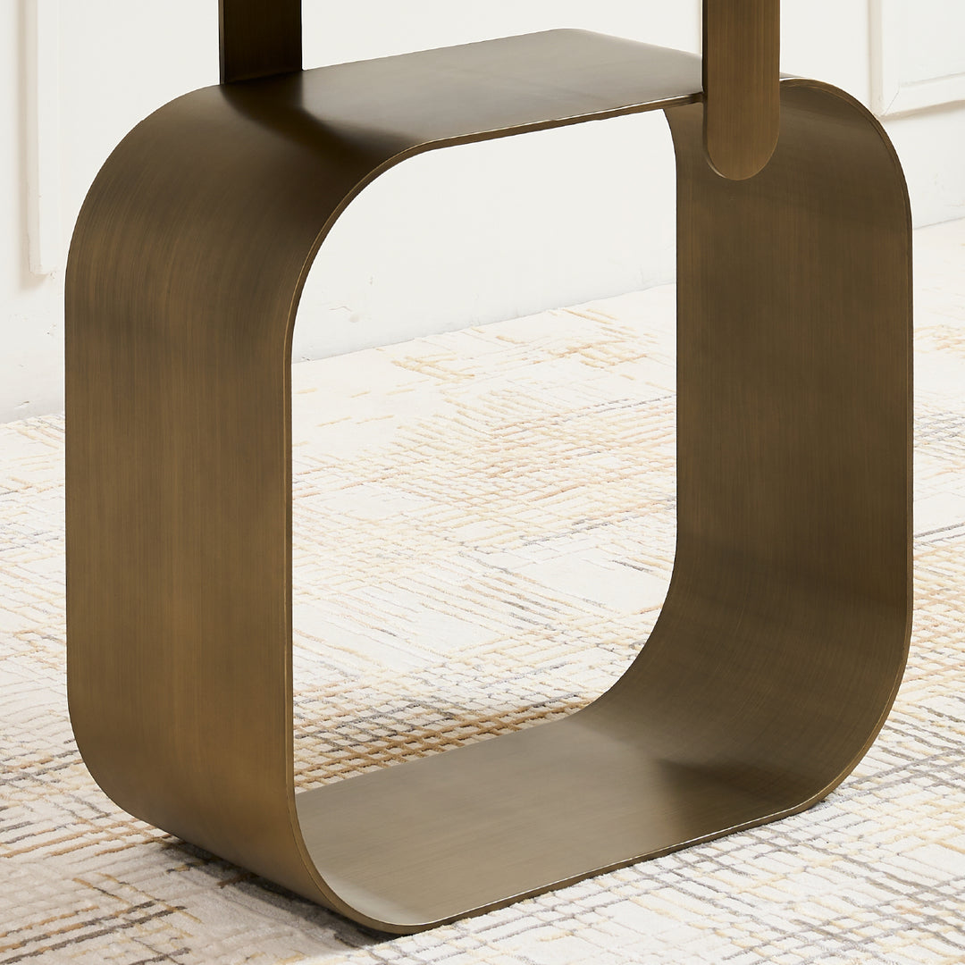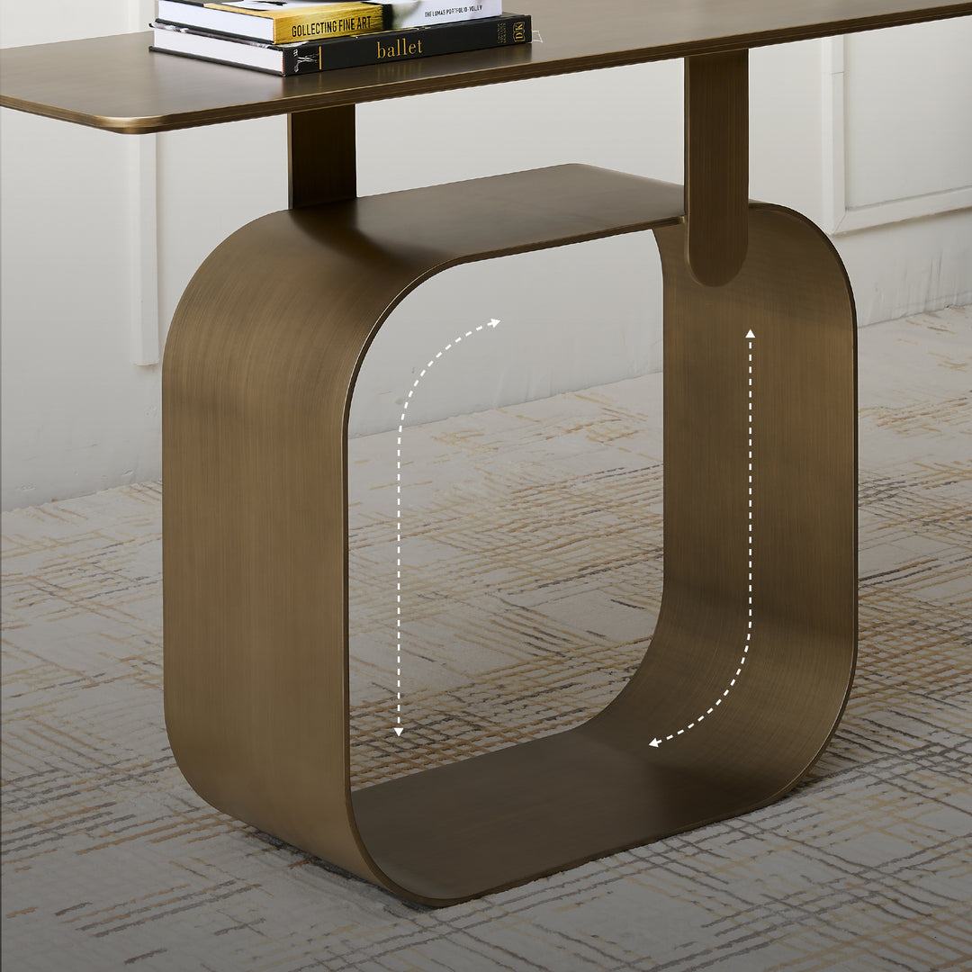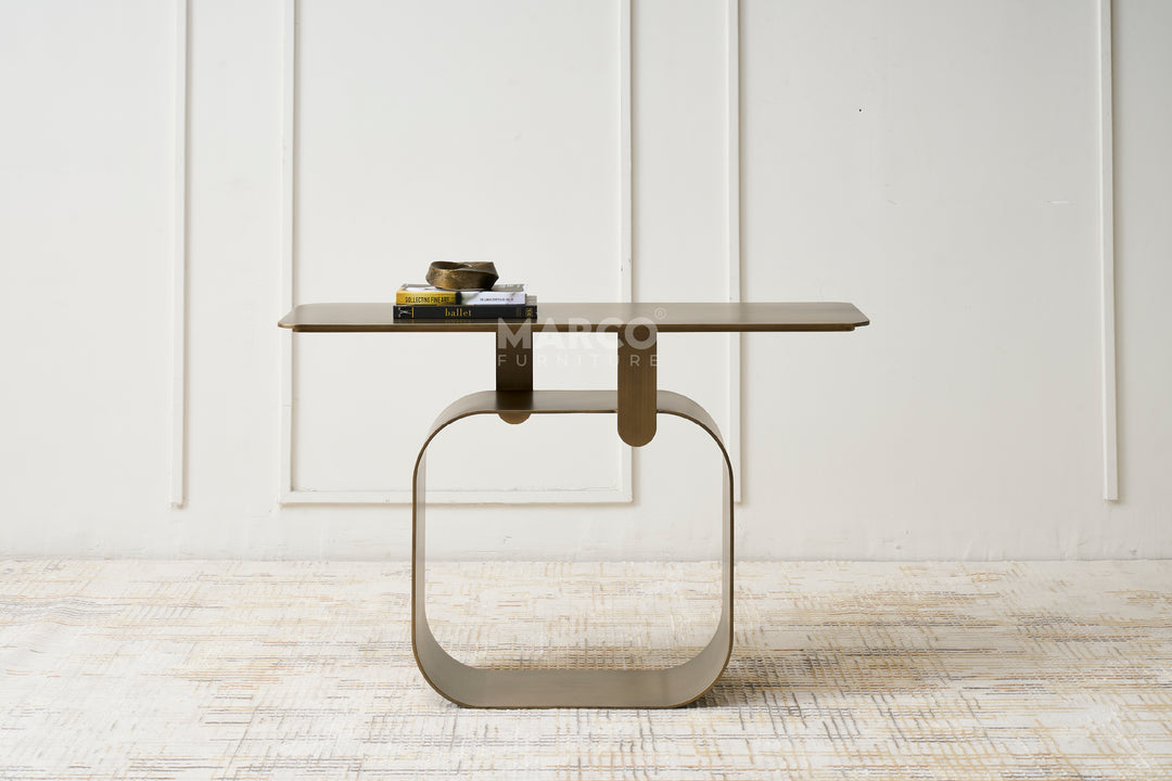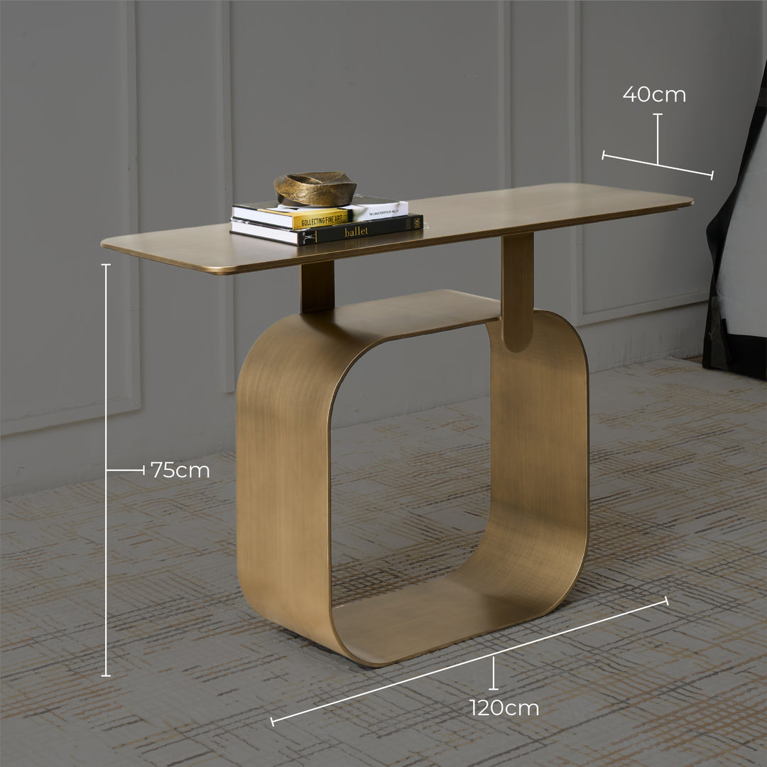 The Artiss Console Table offers both a visual statement and practical function in one stunning piece. Built from high-quality metal and powder-coated in antique brass, this table provides a sturdy display space. Its base is designed with a unique hollow frame, showcasing an artistic approach.