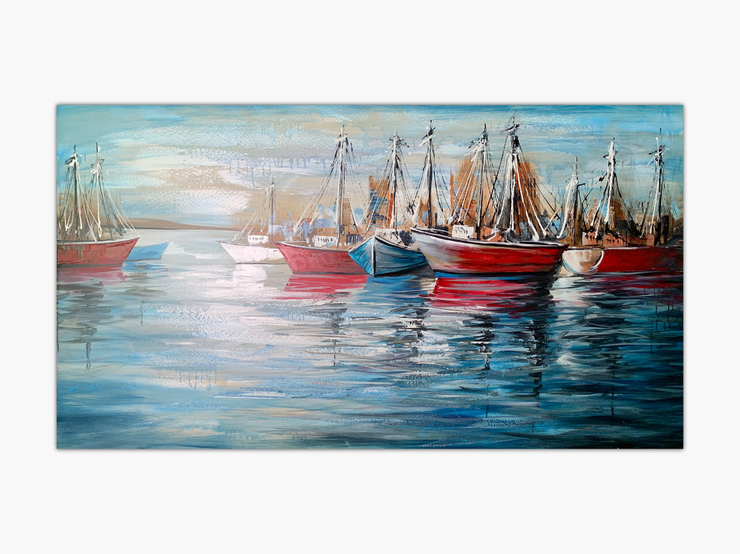 This ace piece exhibits elegant boats arriving at a dock. With shady accents and a vibrant mix of shades and subtle hues, this fine art, coast seascape painting, is stunning in several varied means. The serenity and reassuring ocean just make it further outstanding.