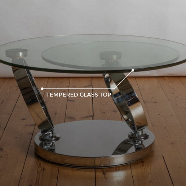 Avalanche Swivel Glass Coffee Table with Tempered Glass Top and Stainless Steel Base