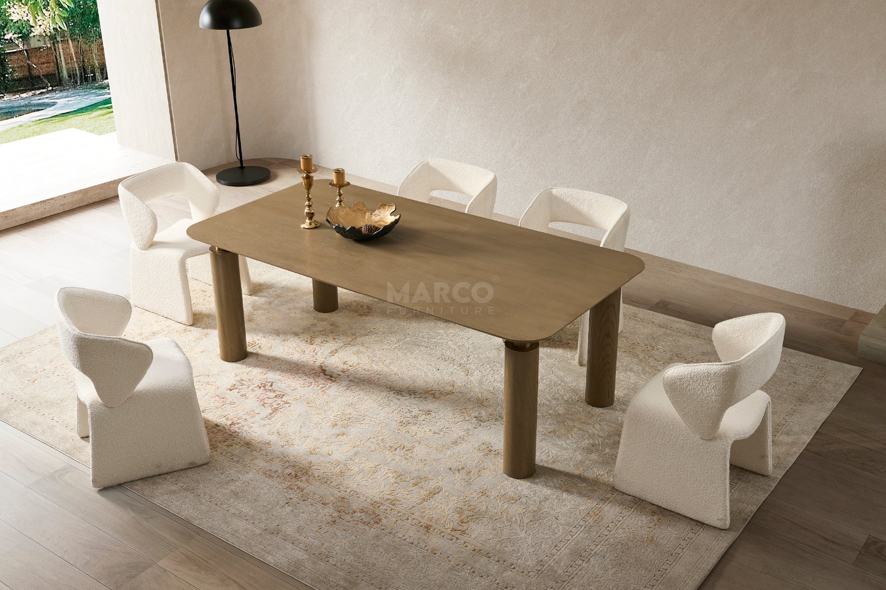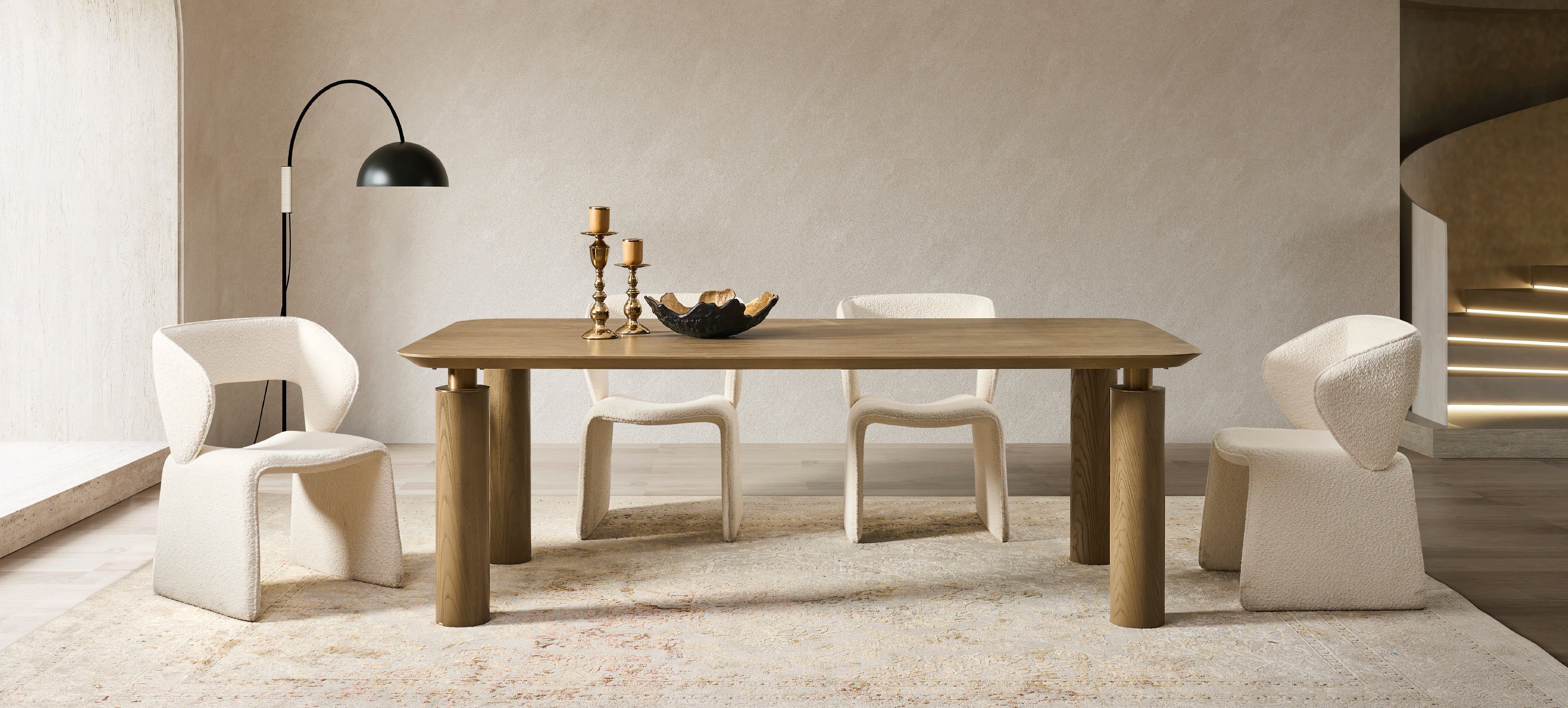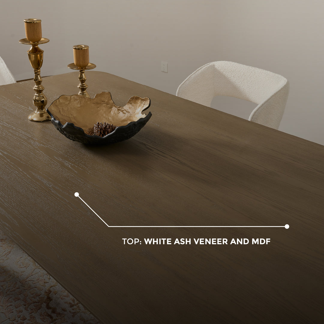 White ash veneer in a natural finish adds strength and resilience to this modern dining table.