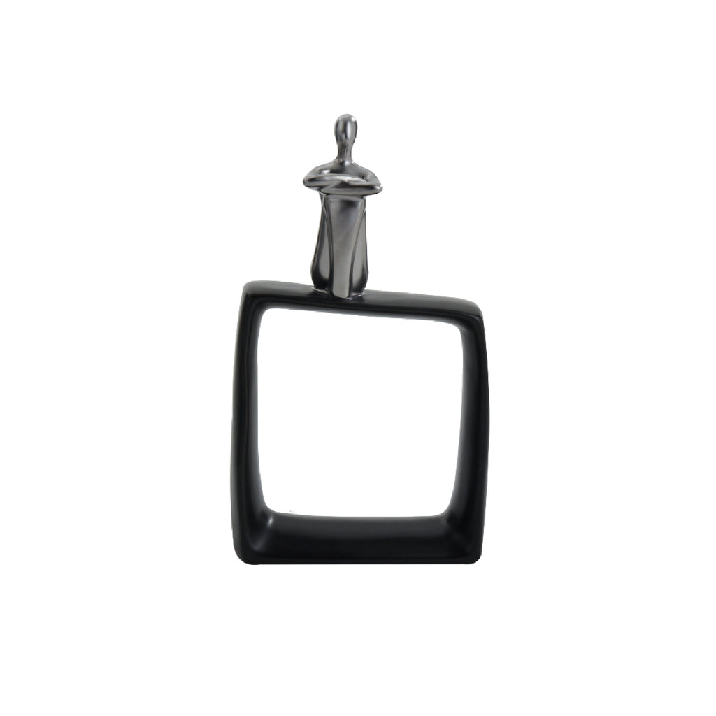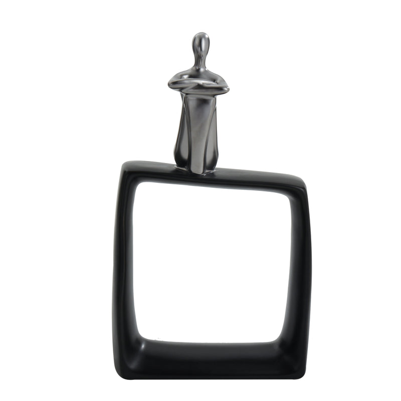 The Black Ceramic Abstract Collection is a captivating piece that brings an artful edge to home decor. Made from high-quality ceramic, this table centerpiece features a black thinking man figure resting on a glossy black cubic block with a negative space. Perfect for coffee tables, hallway consoles, or as a unique gift, this thinking man statue adds a touch of contemporary artistry to any space.