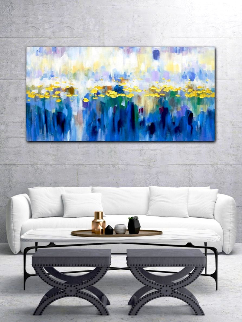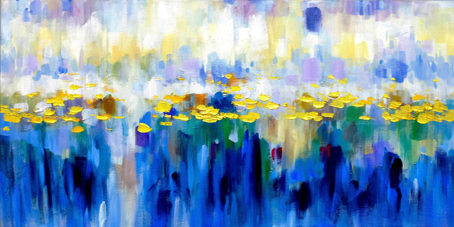 This exquisite abstract displays the gorgeousness, calmness, contemplation and the slow passage of time in the mountains. Idyll that is displayed by the masterful use of abstract style and painting skills.