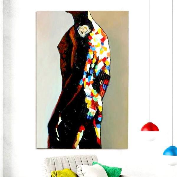 The human body is one of the purest & most masterful god's creations. Body Love is a fine art figurative painting glorifying the human body by mixing ultra-dark & colorful spots representing its perfections and imperfections (sins).