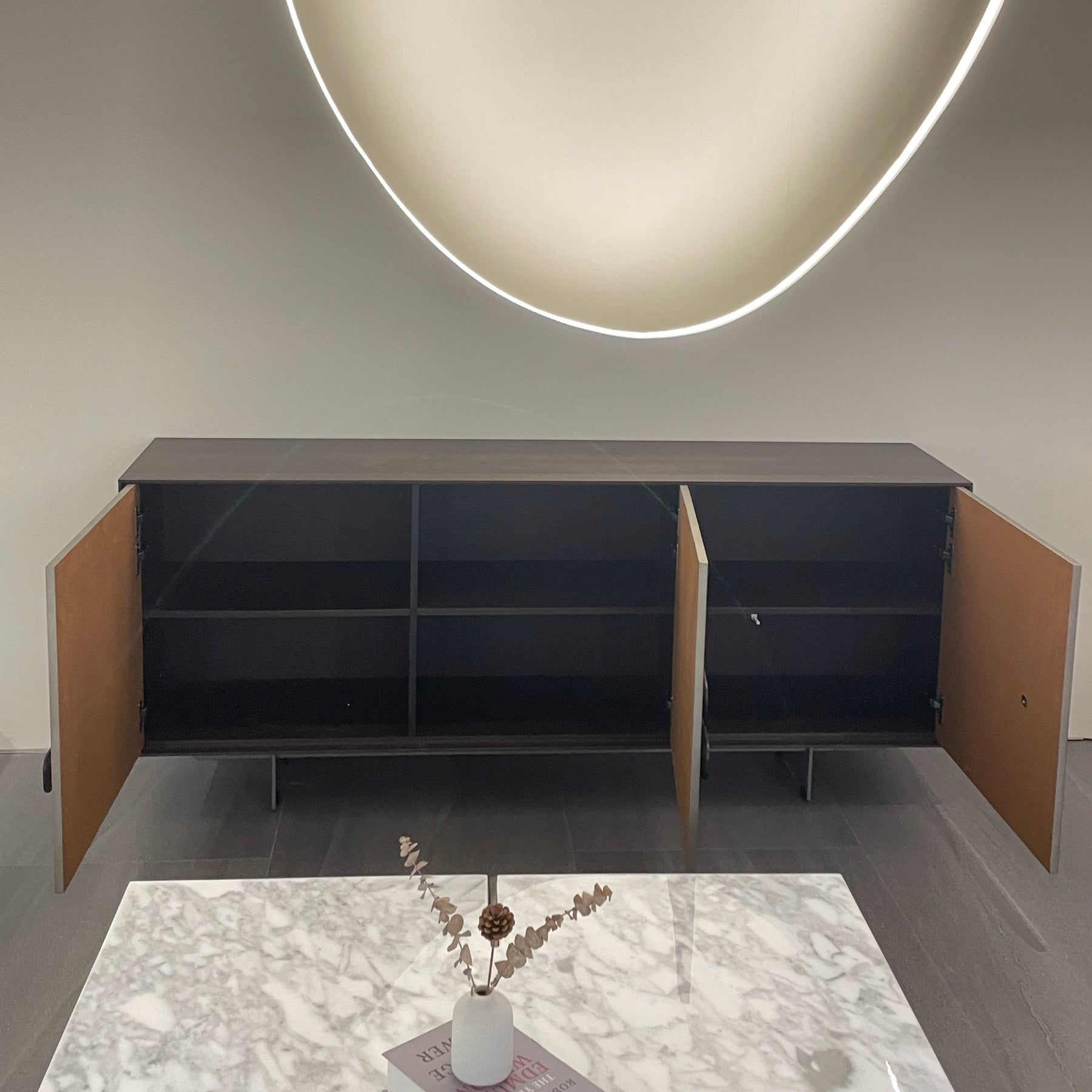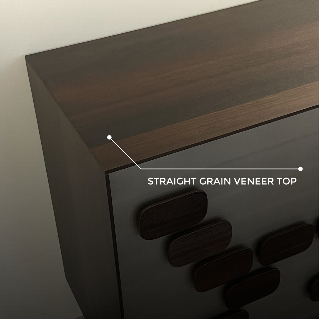 The Castilla Sideboard exudes natural charm, crafted with high-quality Eucalyptus veneer and supported by durable carbon steel legs. Its 3 piano paint finished cabinet doors open to reveal storage space, perfect for organising your living and dining room essentials.