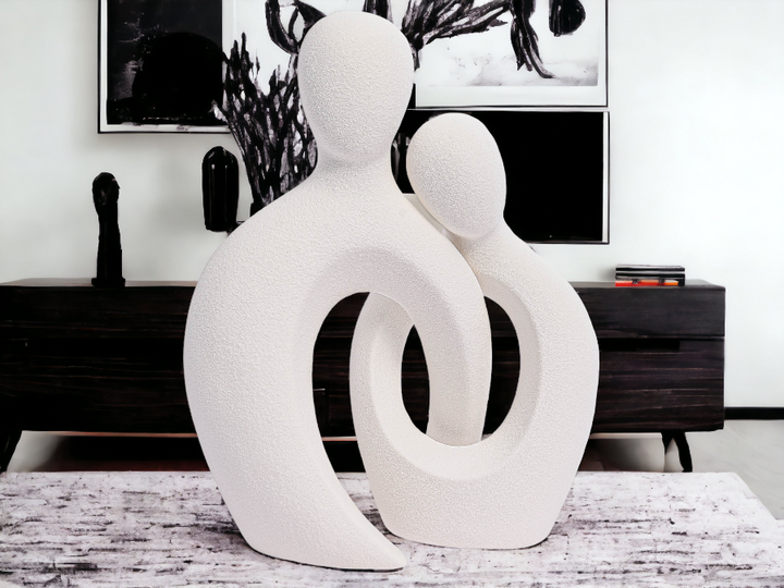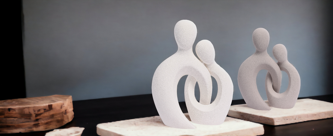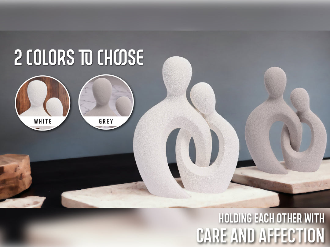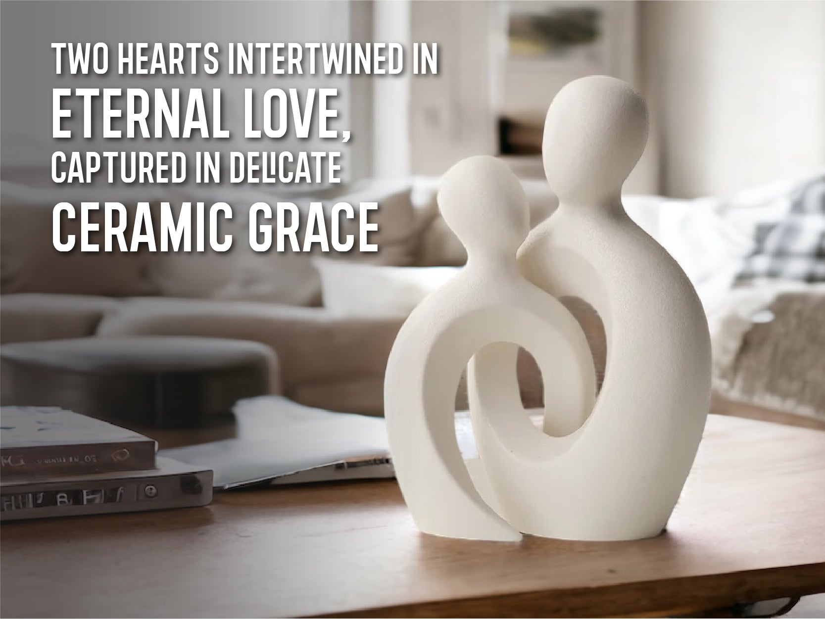 The Romantic Couple Ceramic Sculpture, crafted with attention to detail, features a grey finish that effortlessly complements any decor. This set features two grey ceramic figurines, intertwined with each other in a way forming a heart-like shape. As a symbol of unity and affection, these statues are ideal for standing alone as stunning decorative pieces.