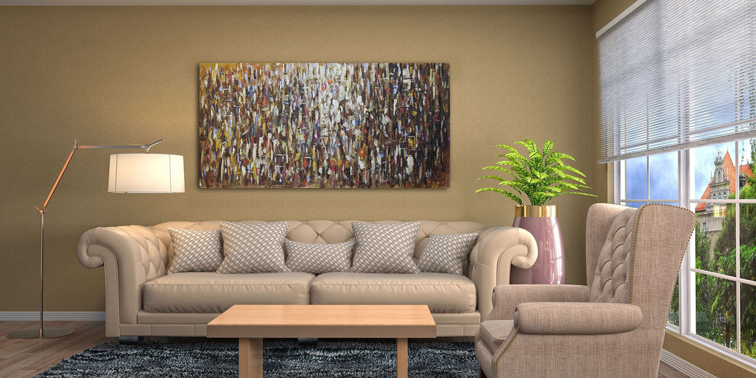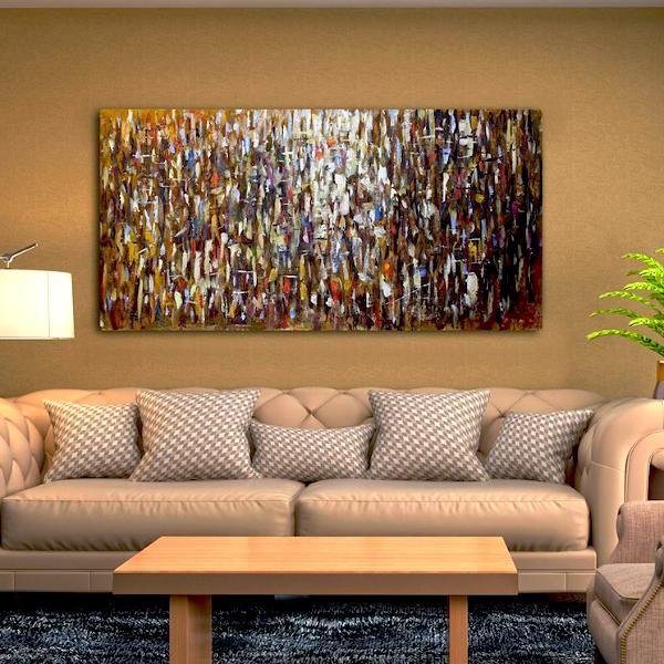 This breath-taking mixture of shapes and colors expresses the positive vibes and versatility of a full concert stadium. Wall art abstract that will breathe color, emotion and warm feelings to any room.