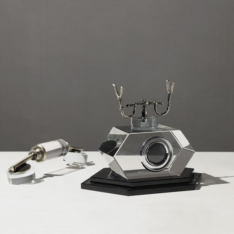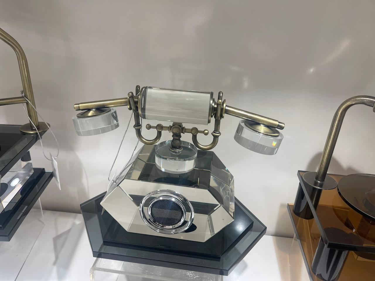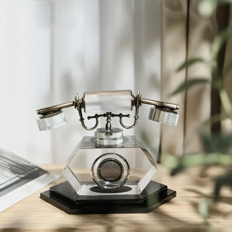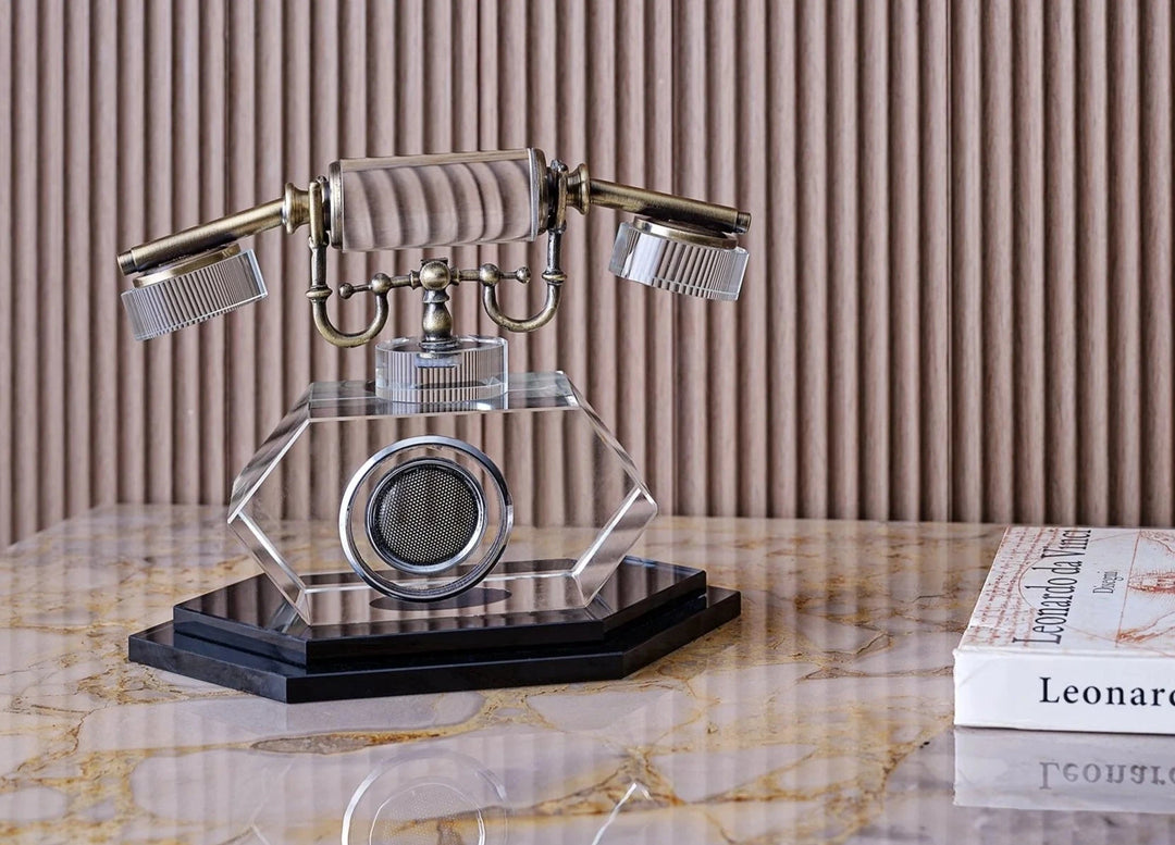 The Acrylic Vintage Telephone Decor makes a great accent piece for decorating a coffee table, TV cabinet, console table, or any living space. This retro-themed telephone is constructed from a high-quality clear acrylic with brass detailing and a black base. With beautiful detailing, this vintage sculpture makes a perfect addition to Nordic interior styles.