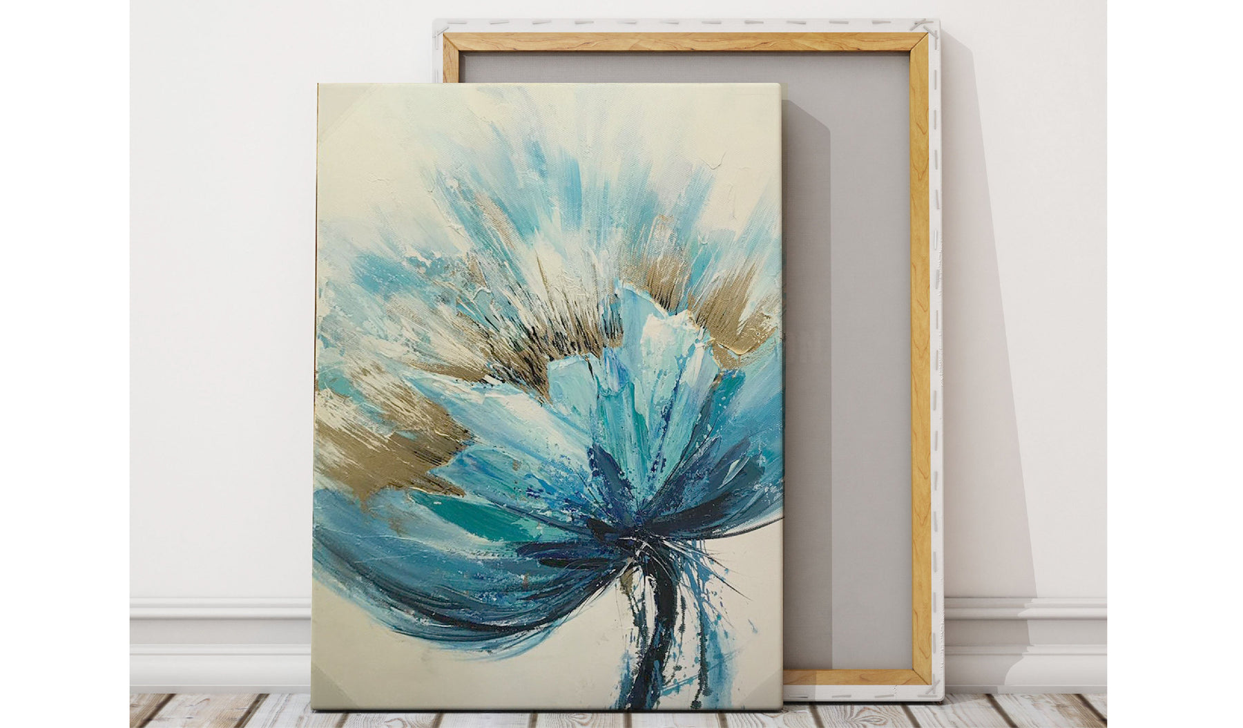 Vibrant and lively. This floral art is representing a lively and mesmerising flower depicting the time of youth when the energy and glory is at peak. An enthralling and accentuated splashes of the blue hue catches the sight in this floral art. This is a masterpiece of the description of life.