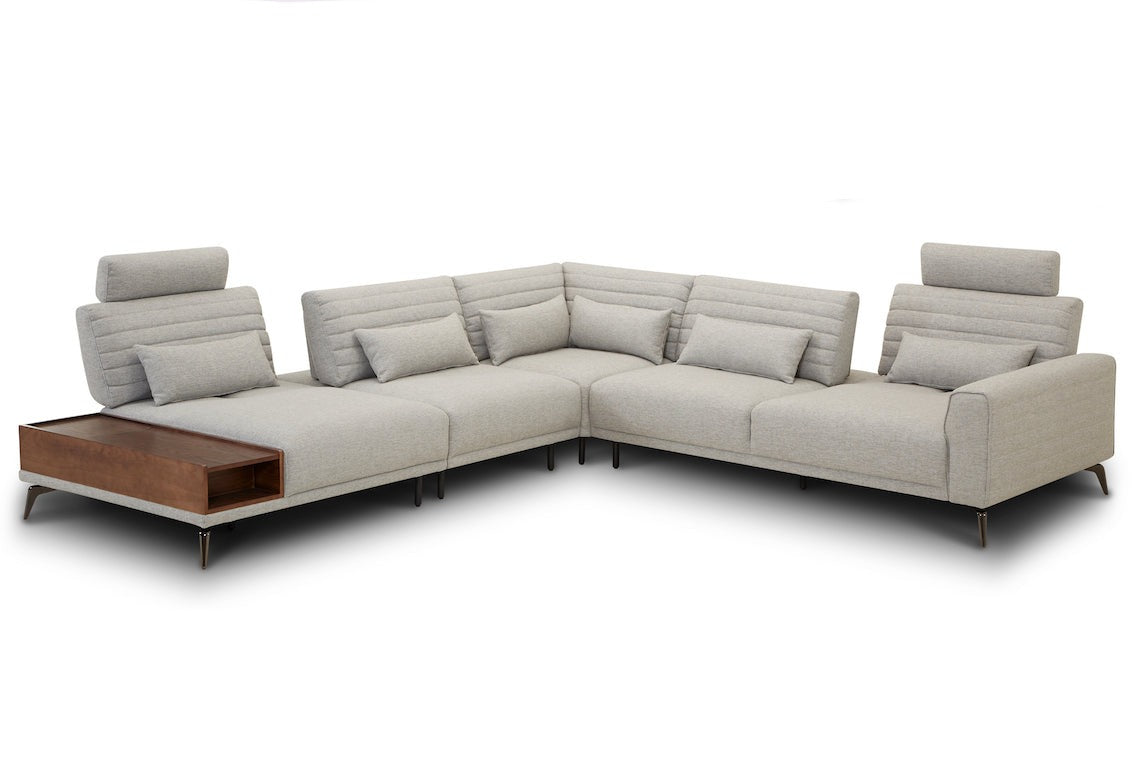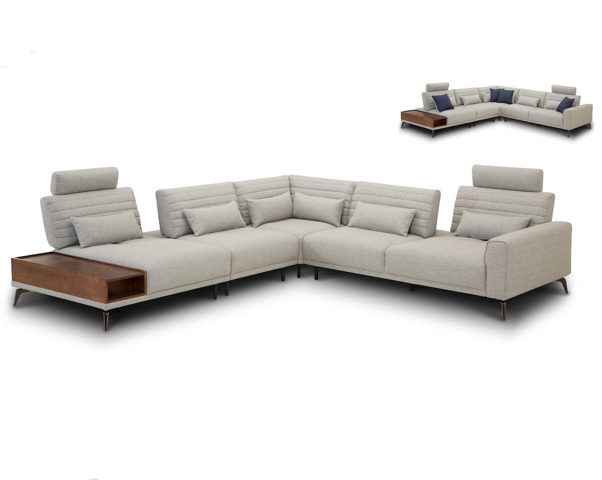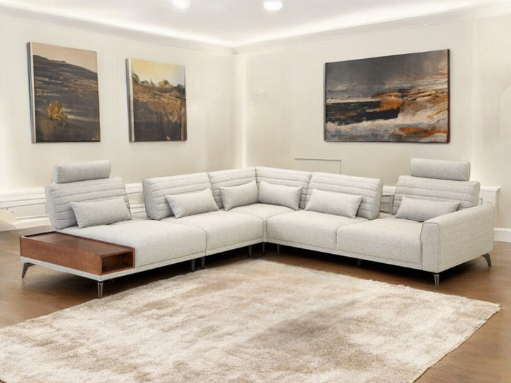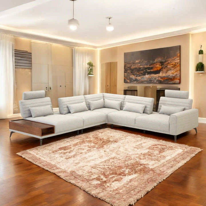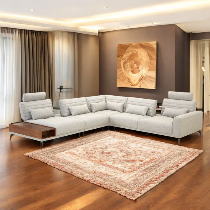 Glamour Upholstered Fabric Sectional Lounge – Modern L-Shape Sofa with Headrests