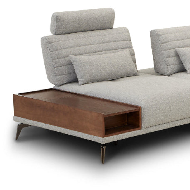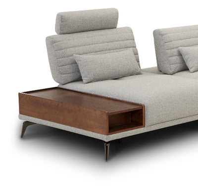 The Glamour Fabric Sofa is made for modern Australian homes, offering comfort and flexibility in one stylish design. Each seat has a manual extendable backrest, so you can adjust seat depth and convert it into a chaise for added relaxation. The standard configuration includes two removable headrests that can be positioned on your preferred seat. It comes along with additional soft cushions and a handy storage console. This sofa is best placed in the centre of your living room, not against a wall, offering an open airy aesthetic. Higher legs offer easy access for vacuuming or mopping, reducing dust build-up beneath the sofa. Customize it as a corner sofa with additional armless seats to suit your space.