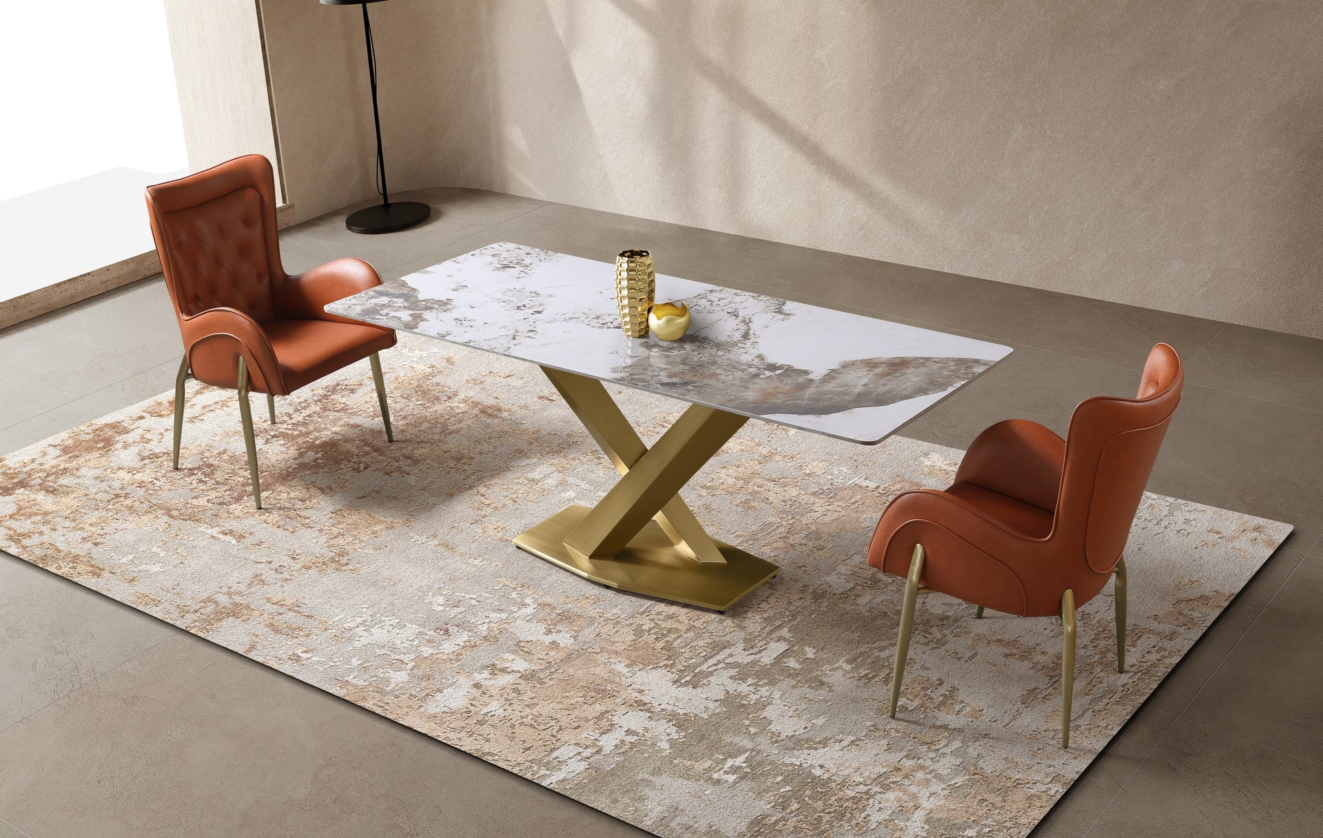 The Harvey Sintered Stone Dining Table is a sleek, durable, and low-maintenance dining table that is the perfect choice for smaller spaces. Expertly crafted with a sintered stone top, it features unique colour and patterns for a distinctive look. The heat-resistant sintered stone top is supported by a metal cross base with a powder-coated finish, creating a smooth, modern aesthetic.