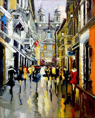 Mixture of street art & city landscape painting that completely displays the beauty of the secret hidden streets. This abstract represents a notion that lots of soul and stories are often found in the streets that no one knows.