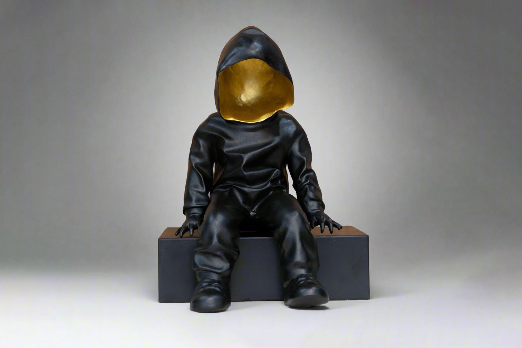 Black Hooded Gold-Faced Figurine