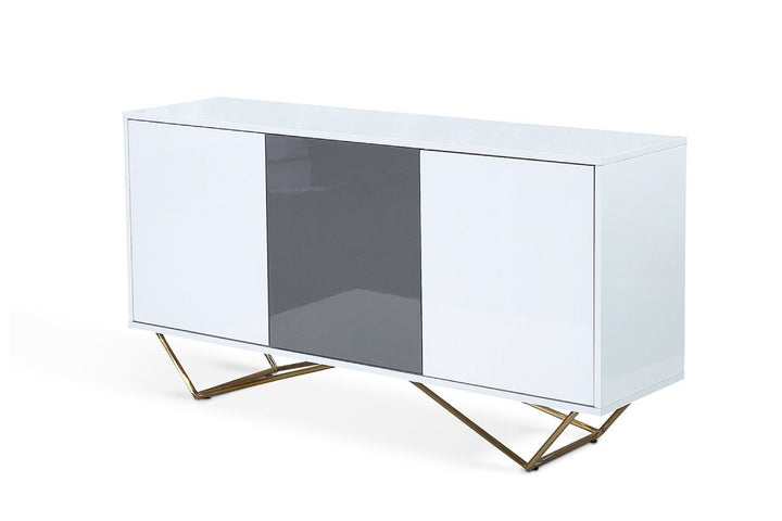 Lacy Buffet Sideboard – High Gloss White Storage Cabinet with Metal Base