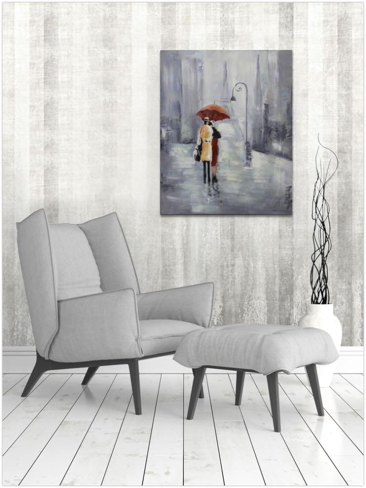 A dreamy fine art representing the soulfulness and emotions surrounding the November rain and autumn. Hues of grey are over layered by a couple in love protecting themselves with a red umbrella.