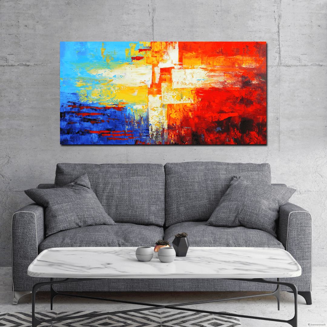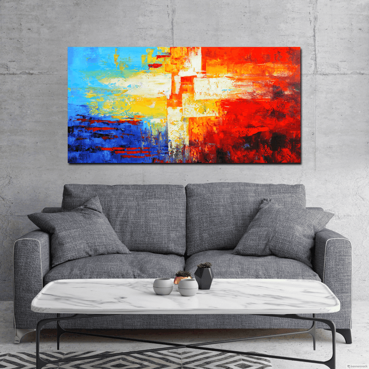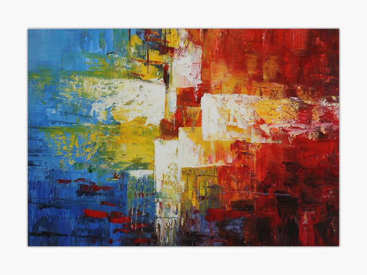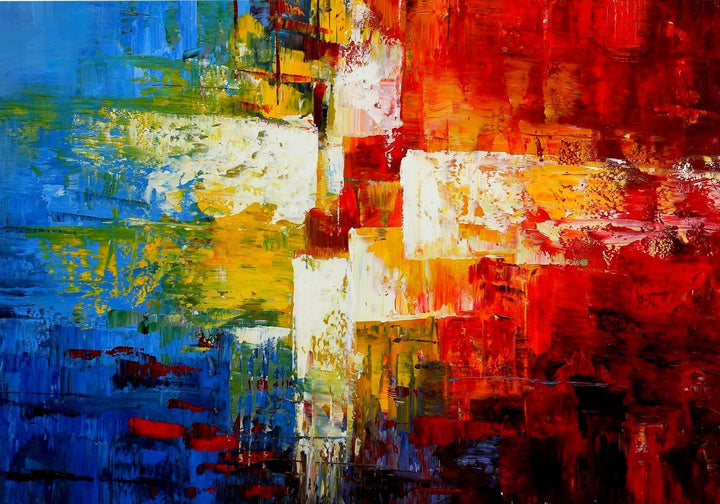 A symmetry pattern of uneven multi-color grids. Blend of colors splash into an ultra bright shape that creates impressive effect. This masterful abstract painting is sure to add art exquisiteness into your home.