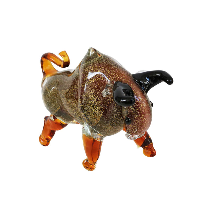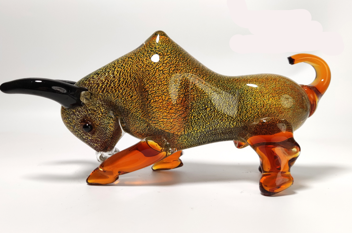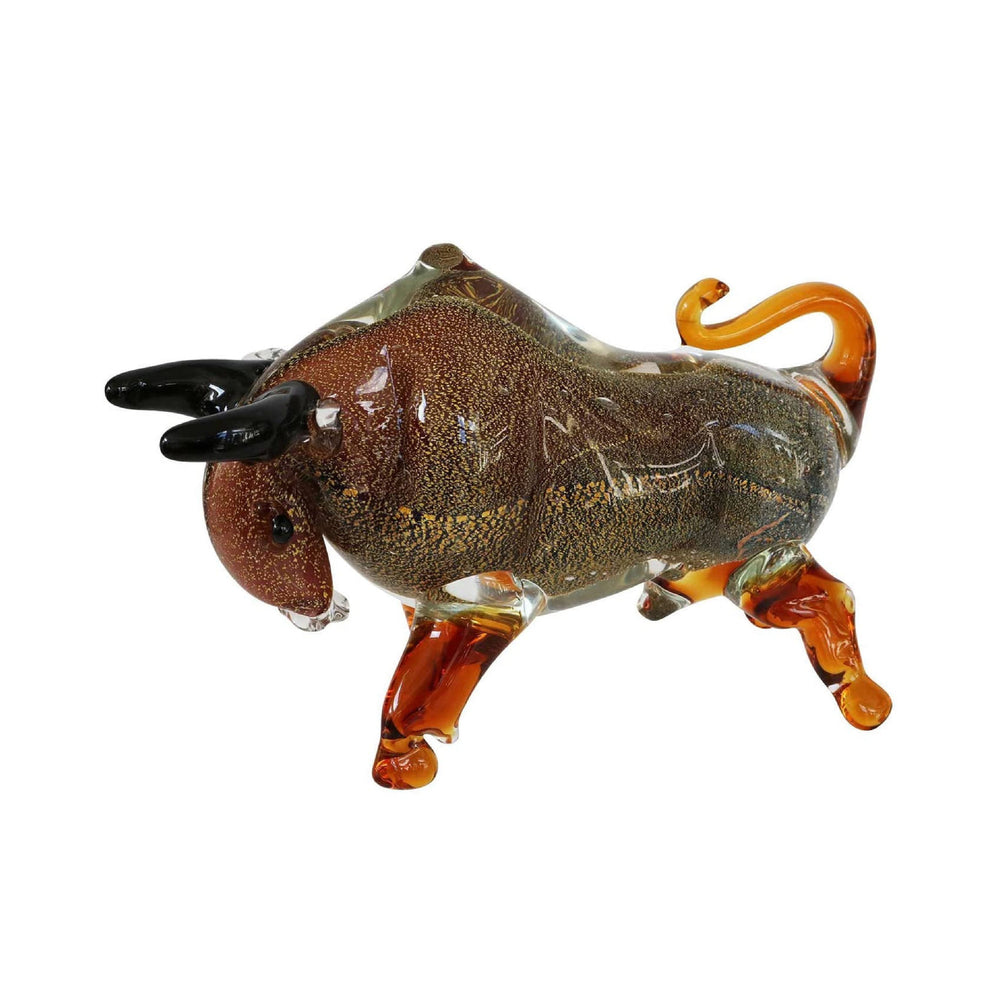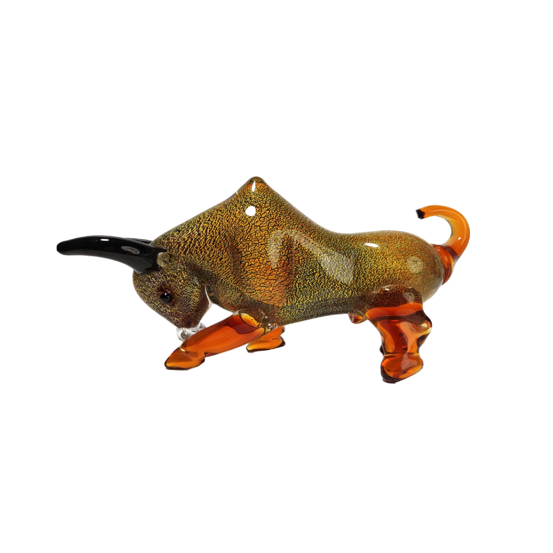 This Bull Murano Style Glass Sculpture is a beautiful piece of art that captures the strength and grace of a bull. Crafted from high-quality glass, it features a rich green colour with clear glass accents, making it a striking addition to any home or office decor. It is a contemporary statue that you can use as a decorative object to place in your living room, entry hall or in any other room to add a touch of style and luxury to any piece of furniture.