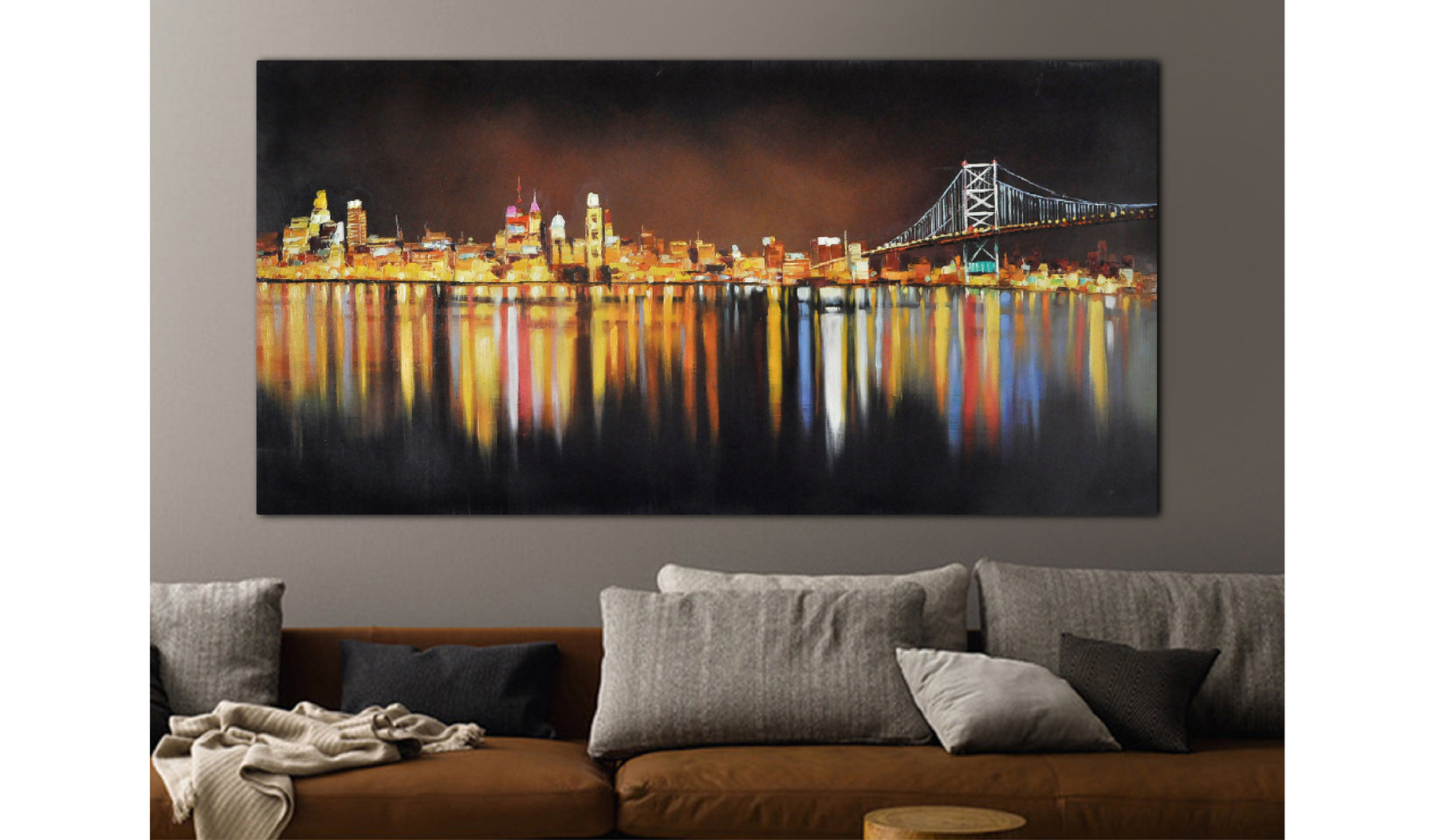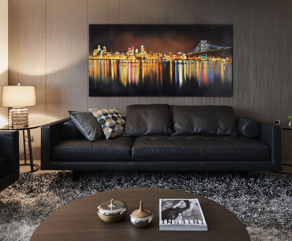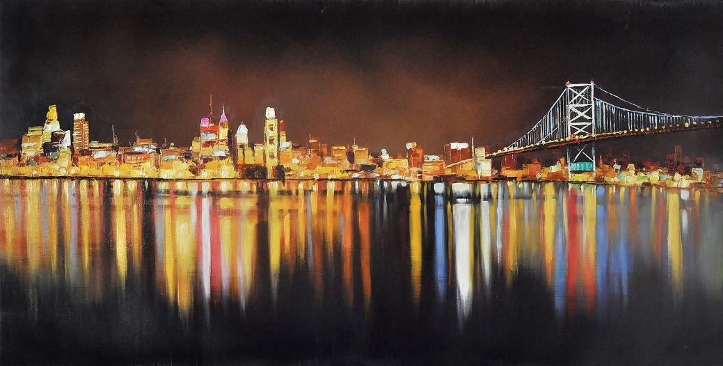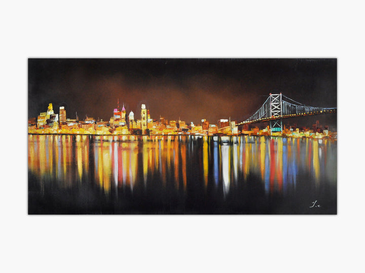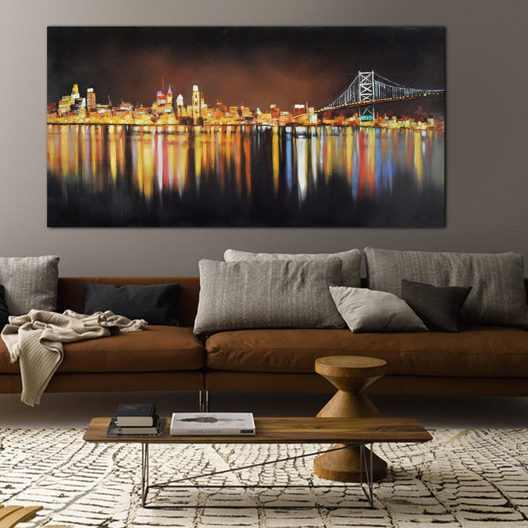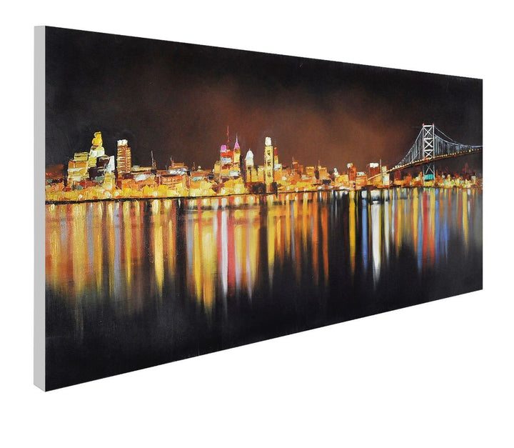 Vibrant and gloomy city lights look always amazing when conveyed into landscape art painting. It's the same with Night Lights Passion. The stunning vibrant lights from the various city buildings not only look stunning by themselves, but the reflection from the ocean has its own charm as well. You couldn't find a better and more impressive horizontal city landscape at night.