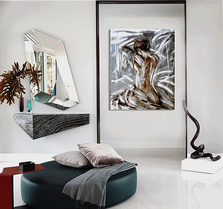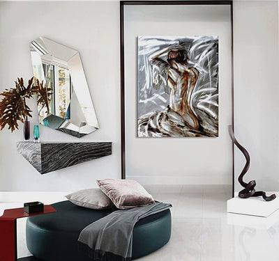 Naked woman filled with desire and passion is conveyed into figurative art that turns heads. The highly detailed, thick and rich play of colors, will wow any viewer. A pure representation of the beauty of the women's passion and body.