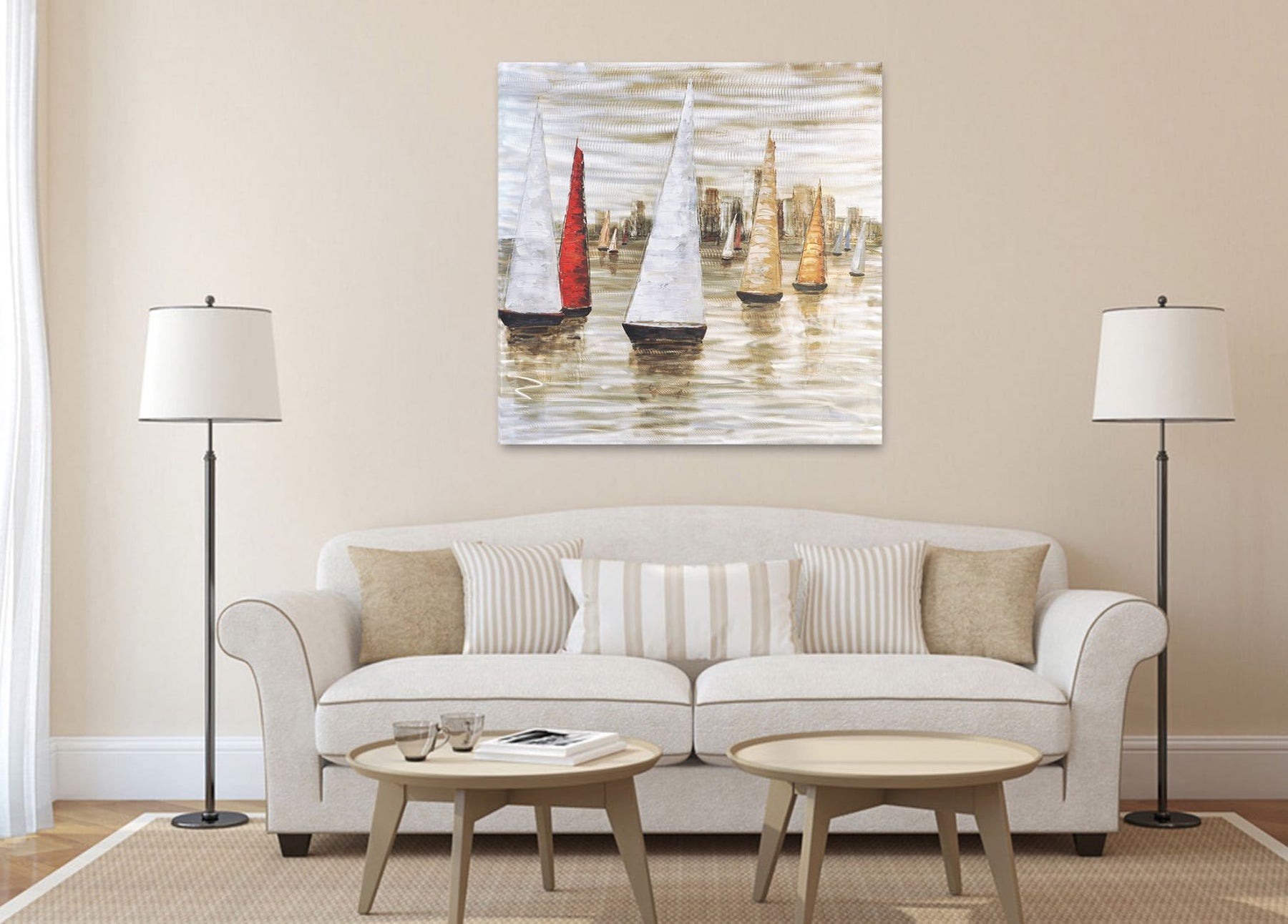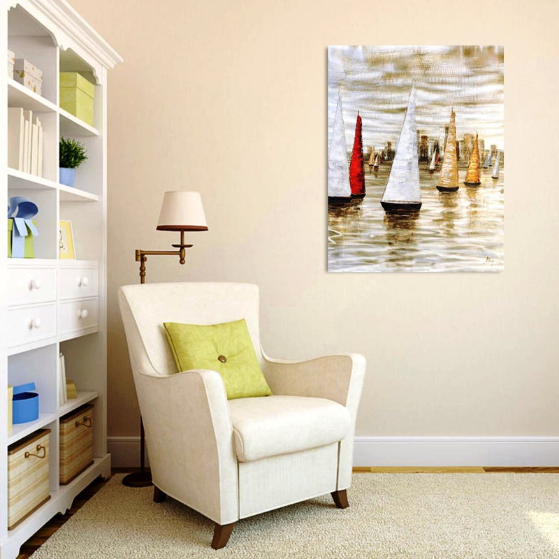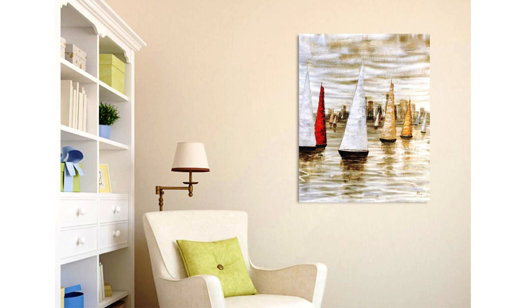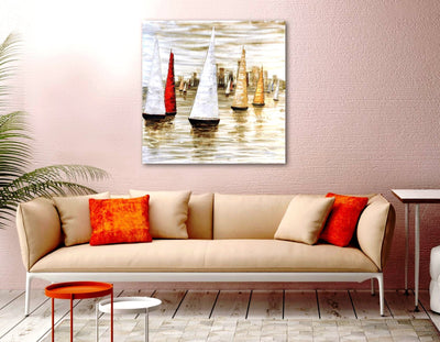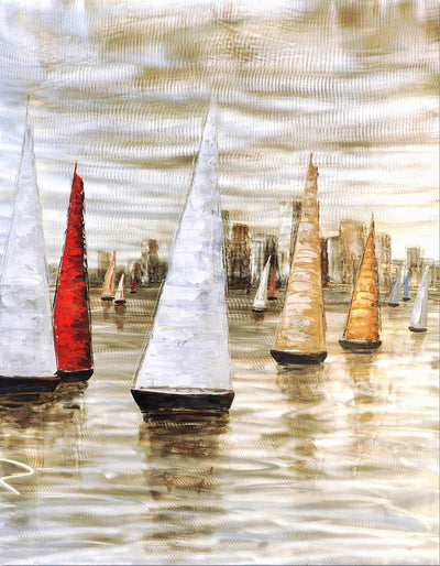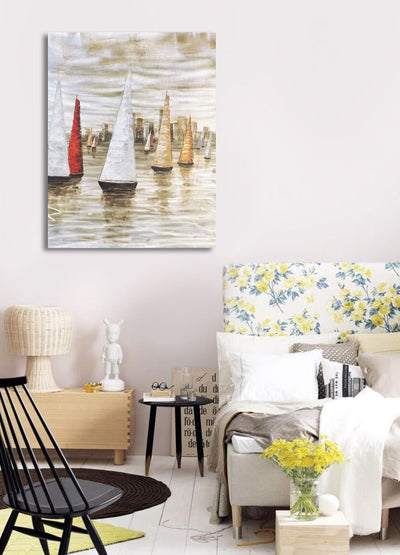 Far away in the ocean hundreds of sailors are experiencing true freedom. This landscape art displays multi-colored sailboats freely sailing across the sea. Expressing the calmness and freedom of sea, this will surely bring peace and artistic character to your home.