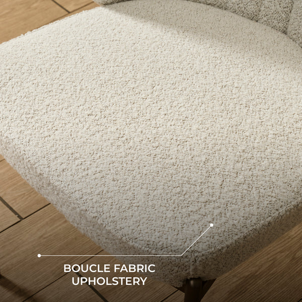 Boucle fabric upholstery paired with premium density foam fill offers a plush, supportive seating experience.