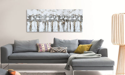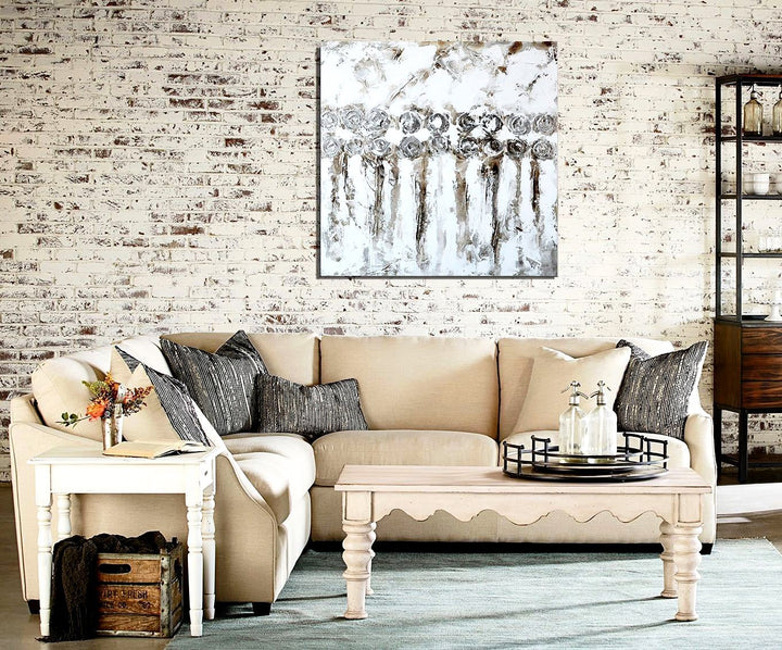 Hues and layers of white, grey and black are expressing the paths of our souls. At times dark, but also bright in other, this mixture of lines and shapes displays the life and souls of the human. Expressive form of art that gives a lot to think and interpret, but is surely to add meaning and artistic style to any space through abstract art.