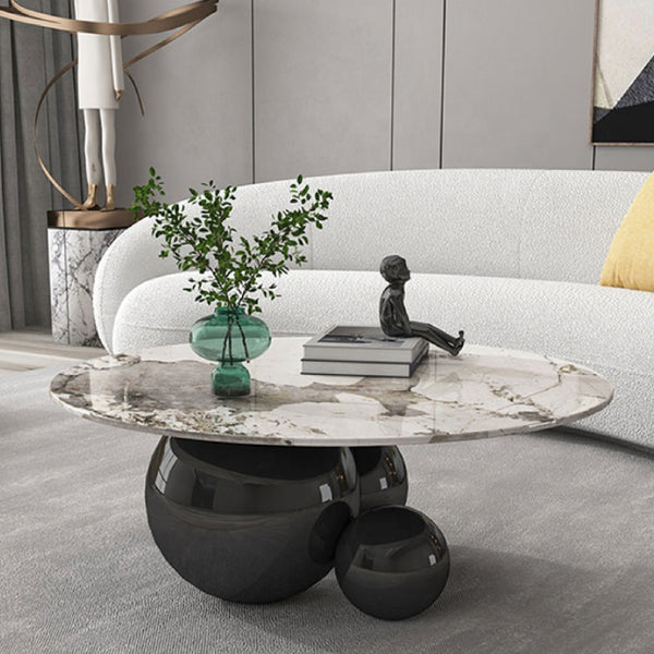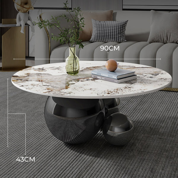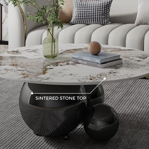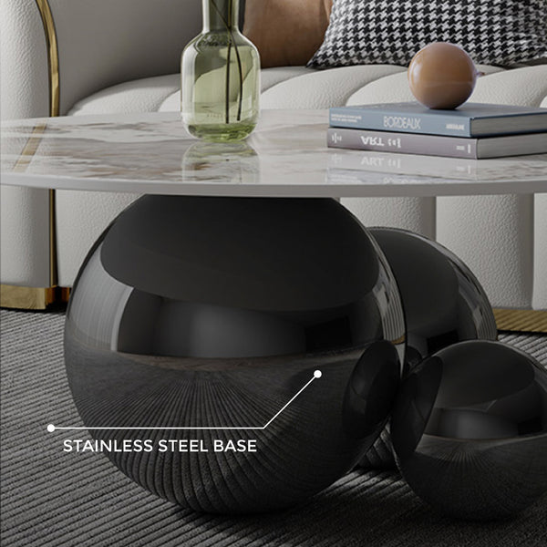 Spigola Round Coffee Table in Black with Sintered Stone Top and Stainless Steel Base
