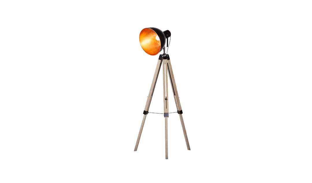 This Tripod Floor Lamp creates a serene space with its balanced illumination and modern design. Featuring a wooden tripod stand and a black bowl shade with gold inner, it is perfect for bringing a warm light to your spaces.