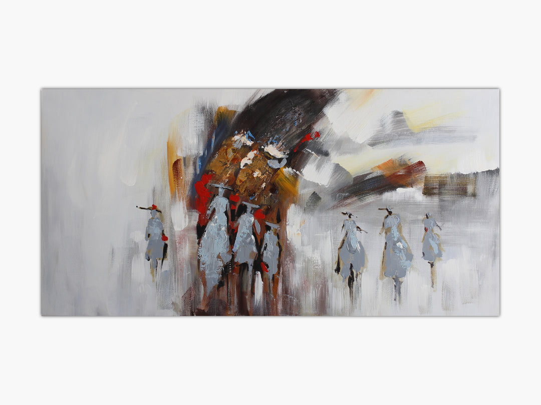 Mesmerizing abstract painting of beautiful women walking together. On the other hand, the predominant white and grey are expressing the beauty of winter.